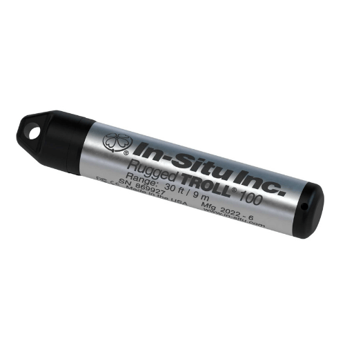Available in pressure ranges up to 250 ft (76 m), the Rugged TROLL 100 is 2.62 cm (1.03 in) in diameter and comes with 2MB of memory, with 120,000 data sets and 360,000 data points. Use a suspension wire and the backshell hanger (included) to deploy the equipment.